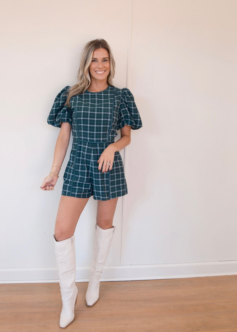 Green Plaid Romper